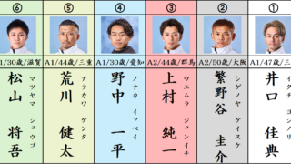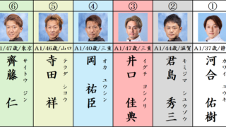 買い目 本線:1-3=256 抑え:23-1-2356 出走表 今回のメンバーはこちら。 選手データ 舟足評価・展開予想 進入は枠なり3対3、もしくは4スローを考えます。 1周バックストレッチではこんな感じを想定します。 ①河合選手、イン先...