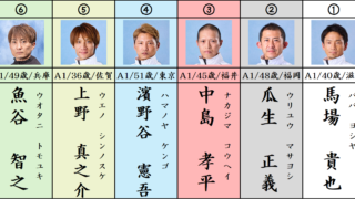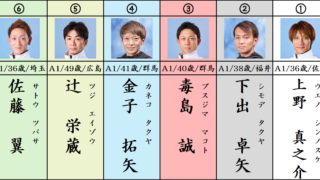 本線は1-34-2345の6点とします。 ここは毒島選手の逃げのみ考えていきます。 毒島選手の舟足は良くて、出足、STしっかり決めることが出来れば逃げは固いと思っています。 相手にはまず③白井選手と④萩原選手を二着に考えます。