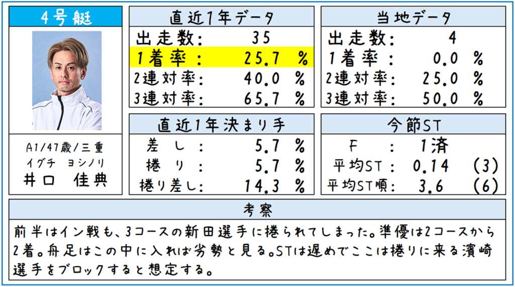 やはり舟足が節一だと思うし、今節はここまで四日間で四勝を上げています。