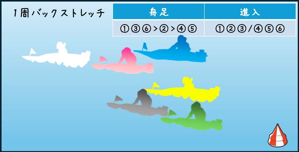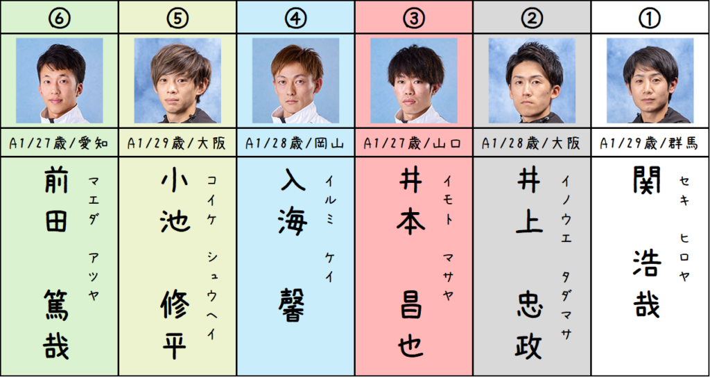 関選手、井本選手、前田選手が舟足上位。入海選手、小池選手が舟足劣勢と見ます。
