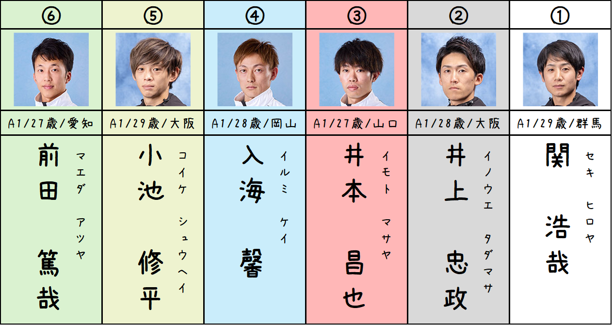 関選手、井本選手、前田選手が舟足上位。入海選手、小池選手が舟足劣勢と見ます。