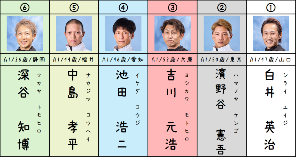 ここは②濱野谷選手がST遅めであることと、③吉川選手の1着率も25%と高いことから③吉川選手の捲り差しを抑えの本命としました。