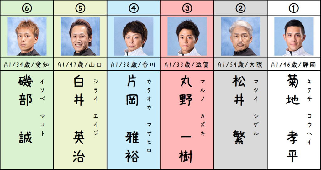 その場合に相手となってくるのは②松井選手、③丸野選手、そして⑥磯部選手の3名の組み合わせとします。