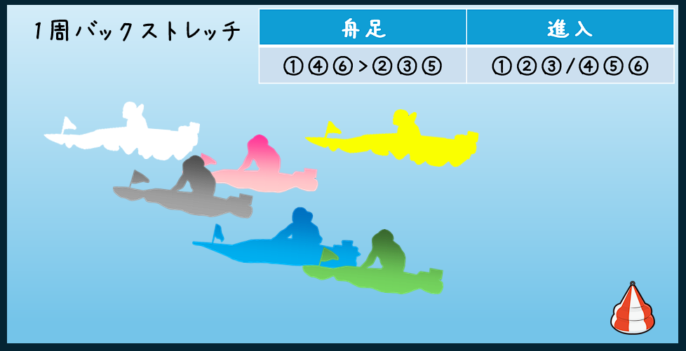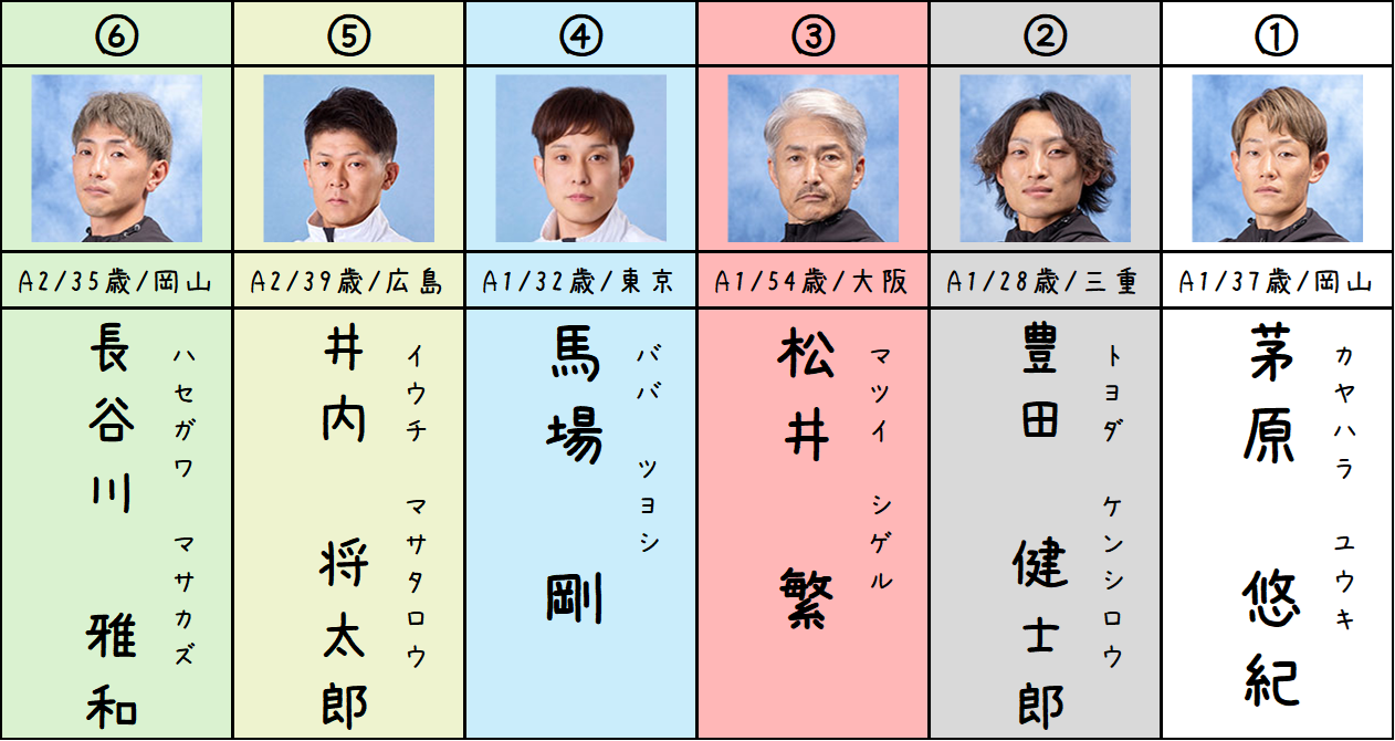 ①茅原選手、④馬場選手、⑥長谷川選手が良くて②豊田選手、③松井選手、⑤井内選手はそこまで目立った舟足ではないと見ています。