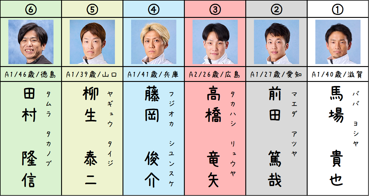 馬場選手、柳生選手、田村選手が舟足良くて、前田選手、藤岡選手がそこまでの舟足ではないかなと見ています。