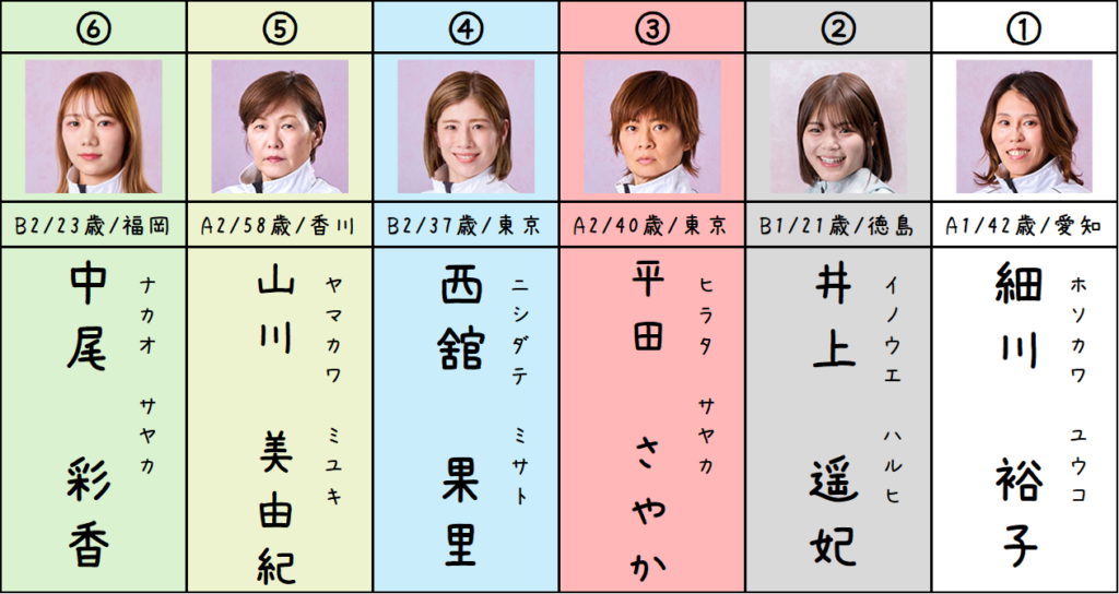 舟足は①②④が良くて、③平田選手が最も悪いと見ています。