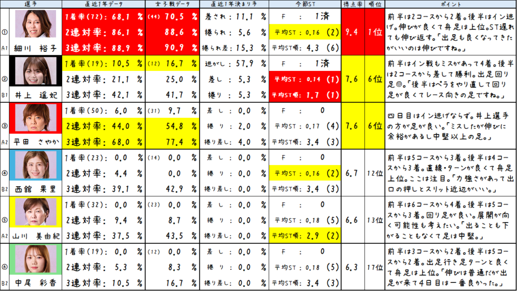 ②井上選手は舟足が上位級だし、STも良くて今節は2コースから2勝しています。