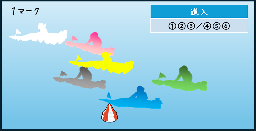 また、⑥西村選手、コース的にも舟足的にもやはり厳しい。ここは切っていきます。