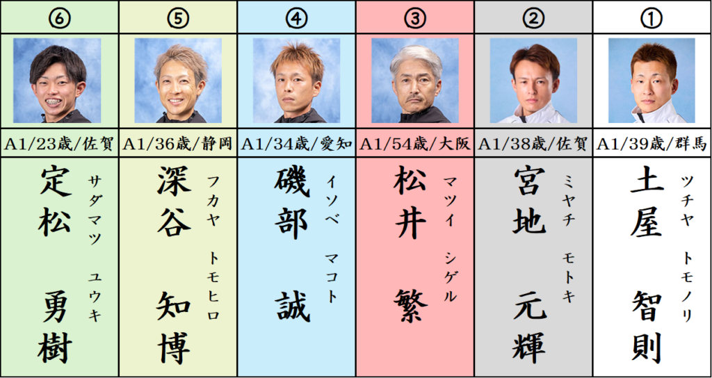特に定松選手に至っては6コースからの3連対率が一般戦では61.9%、SG/G1でも50%とかなり優秀な数値となっていますので、ここは考えていきたいと思います。