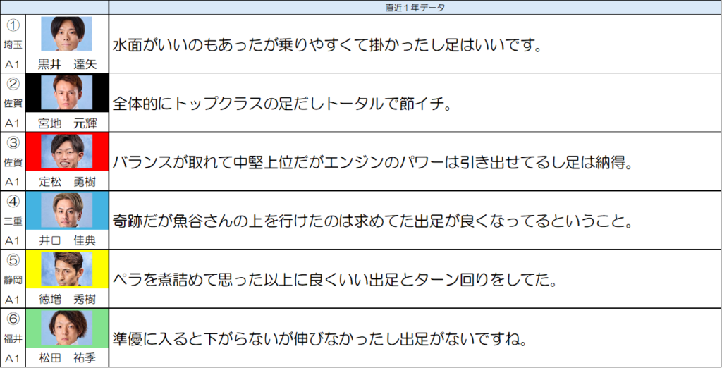 ⑤徳増選手の一着も考えたいところではあるんですが、コース実績を鑑みるとちょっと厳しいのかなと思いました。