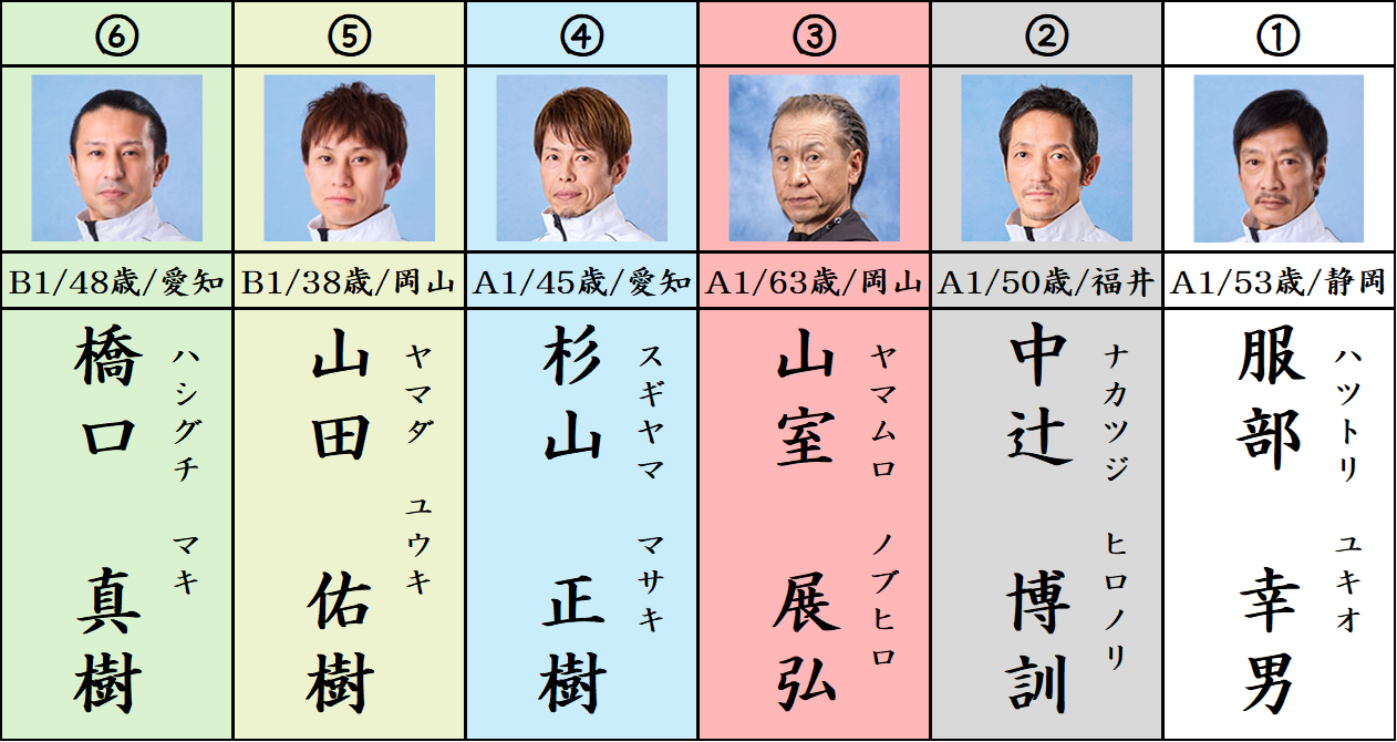2着には捲りをこらえる①服部選手、もしくは捲り切った⑥橋口選手として③着は⑤山田選手以外をつけて2-16-1346。この6点が本線です。