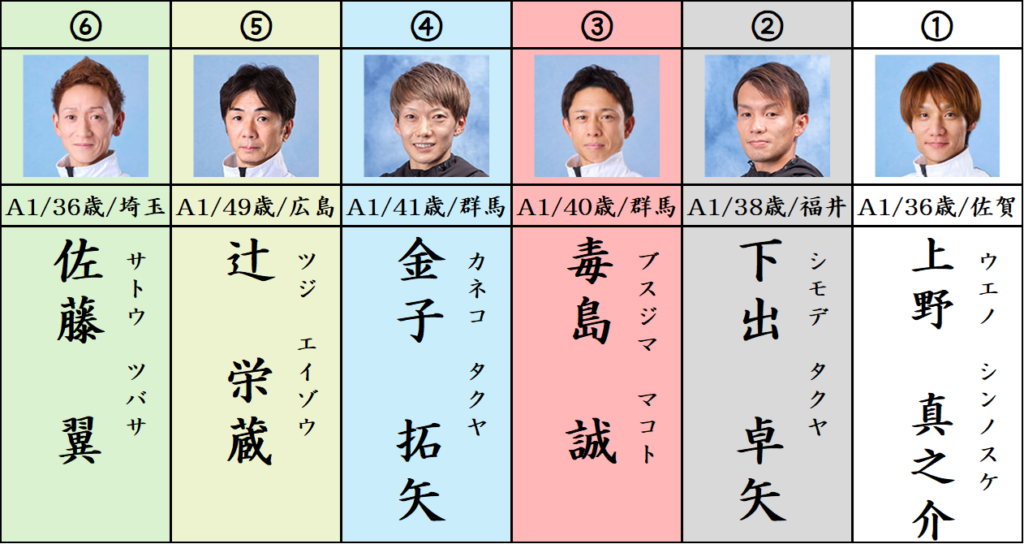 まず舟足評価ですが、最も良いのは①上野選手と見ています。そして②下出選手と③毒島選手も良いですね。そして④⑤⑥はそれほど変わらないのかな、という印象を持っています。