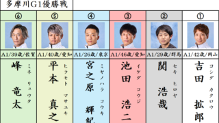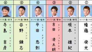 買い目 本線:1-3-全 抑え:2-136-136 出走表 今回のメンバーはこちら。 選手データ 舟足評価・展開予想 池田選手が早いスタートから捲りに行くも、その捲りが不発に終わるパターンを本線とします。 買い目考察:本線 本線は1-3-全...