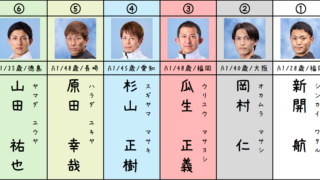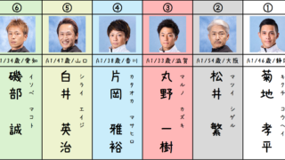 桐生G1もいよいよ準優。あと二日で終わりを迎えることになりますね。さぁ、連勝で締め括ろうではありませんか。 では、レースを考察していきましょう。 買い目 本線:1-3-全 抑え:3-1-全 出走表 今回のメンバーはこちら。 新開選手のイン戦...