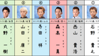 本線:1-6=245このレースは逃げのみ考えます。 理由は、他の艇でインを潰せる選手がいないと思ったからです。 丸野選手の舟足は評価していますが、そうは言っても6コース。やはり遠いし、丸野選手のコース実績1着率2.6%というのを見ても1着は難しいかなと思いました。