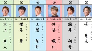 買い目 本線:2-4=136抑え:1-24-2346 出走表 準優ラスト。メンバーはこのようになっています。注目はやはり、2号艇の峰選手ですね。 深井選手が逃げられるかどうか。 選手データ 出走選手のデータは以上になります。 今節、厳しい戦...